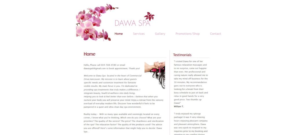 | CONTACT DETAILS | Tel: 604-568-6580 Email: dawaspa0@gmail.com |